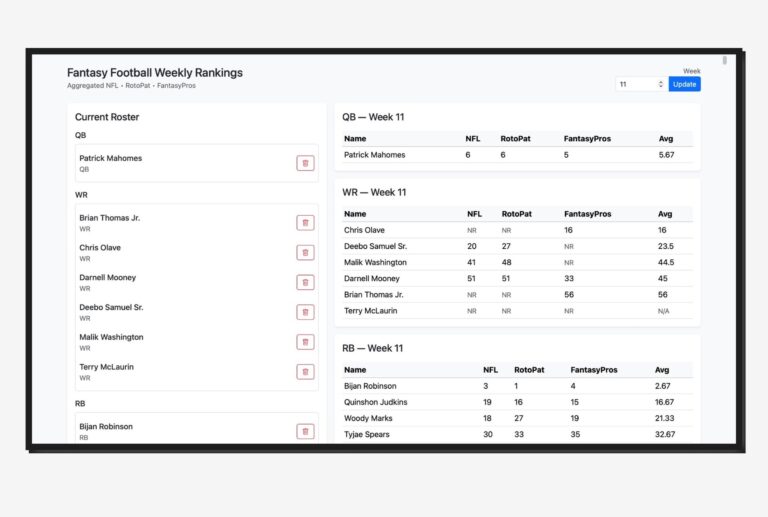 A full-stack Python application that retrieves weekly NFL player rankings, normalizes the data, stores